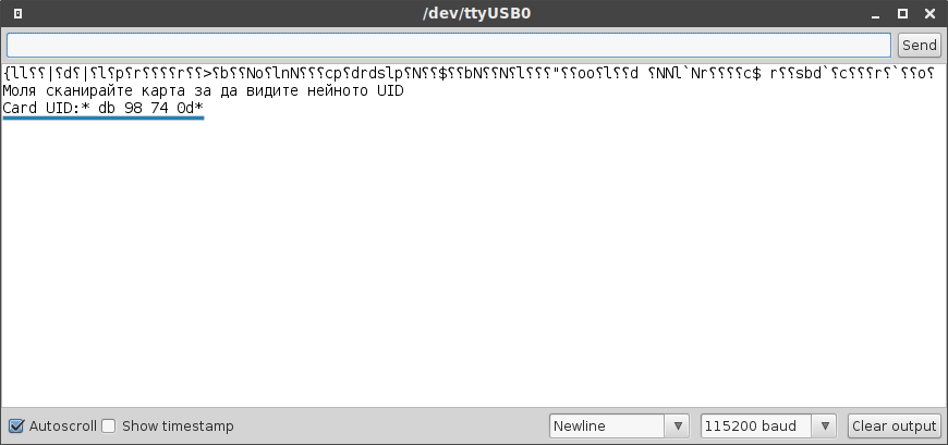 Сега остава да натиснем RST на нашето NodeMCU и серийният монитор ще ни подкани да сканираме карта.