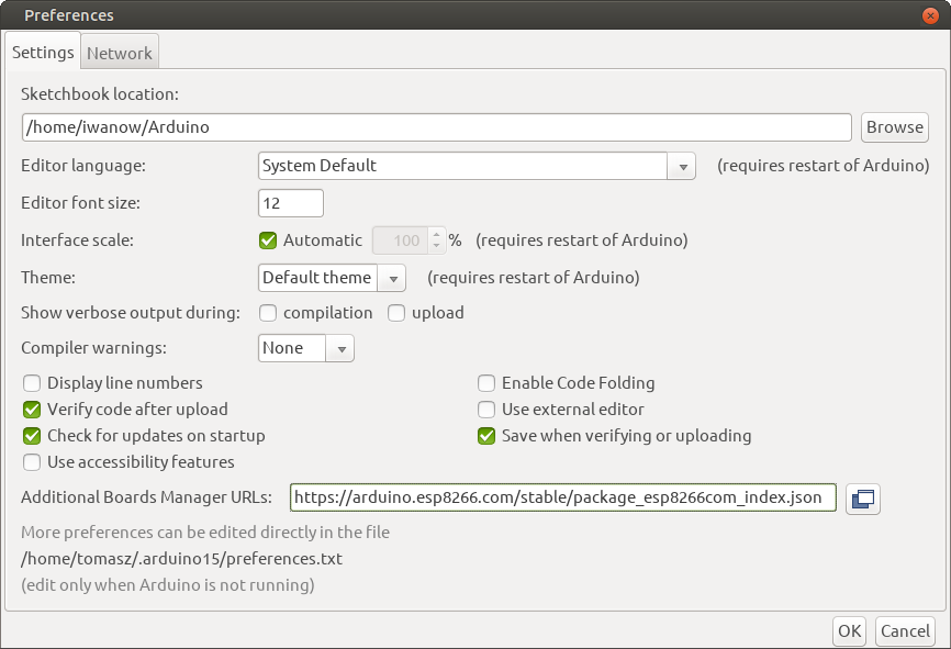 – В полето Additional Boards Manager URLs въведете https://arduino.esp8266.com/stable/package_esp8266com_index.json